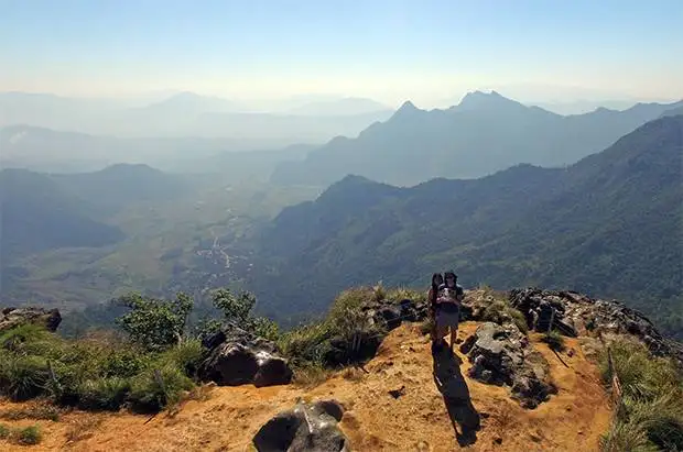 Desde la zona de aparcamiento, hay un caminito que te lleva a la impresionante cima. No hay que andar mucho, unos 15 minutos hasta llegar arriba, al famoso y enorme acantilado desde el que se obtienen unas vistas geniales de un gran valle laosiano.