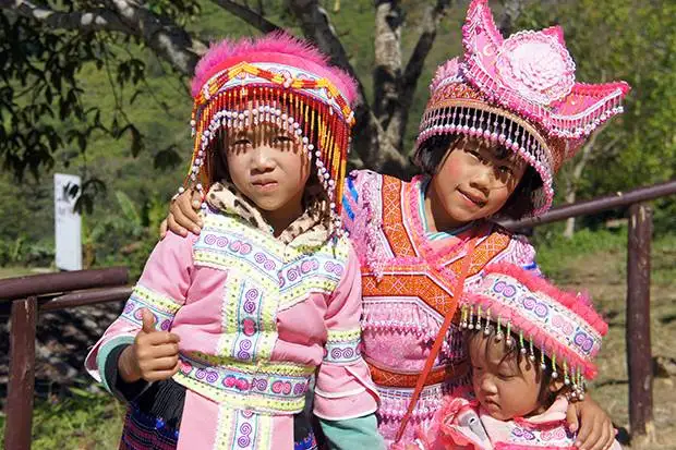 Cuando uno llega al final de la carretera que va Phu Chi fa, se encuentra con una zona de aparcamiento con varias tiendas de gente de etnias locales de los alrededores, donde ofrecen souvenirs. Hay también niñas vestidas con sus trajes tradiconales pidiendo dinero. Como siempre, lo mejor es no darles nada para que sus padres no fomenten esa actividad.
